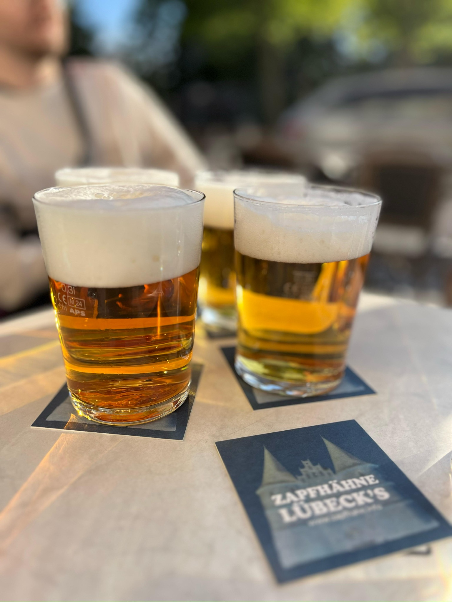 Für ihr Treffen im Mai machten die Zapfhähne wieder eine kleine Tour durch Lübeck – erste Station war das Dietrich’s – Café, Bar & Weinbistro. An einem sonnigen Frühsommerabend fanden die vier einen Platz draußen vor dem Haus, mit Blick auf die Trave und das Holstentor. Das Ambiente: edel und schick, fast schon ein wenig an eine American Bar erinnernd, zugleich aber entspannt und angenehm, getragen von der warmen Abendstimmung.