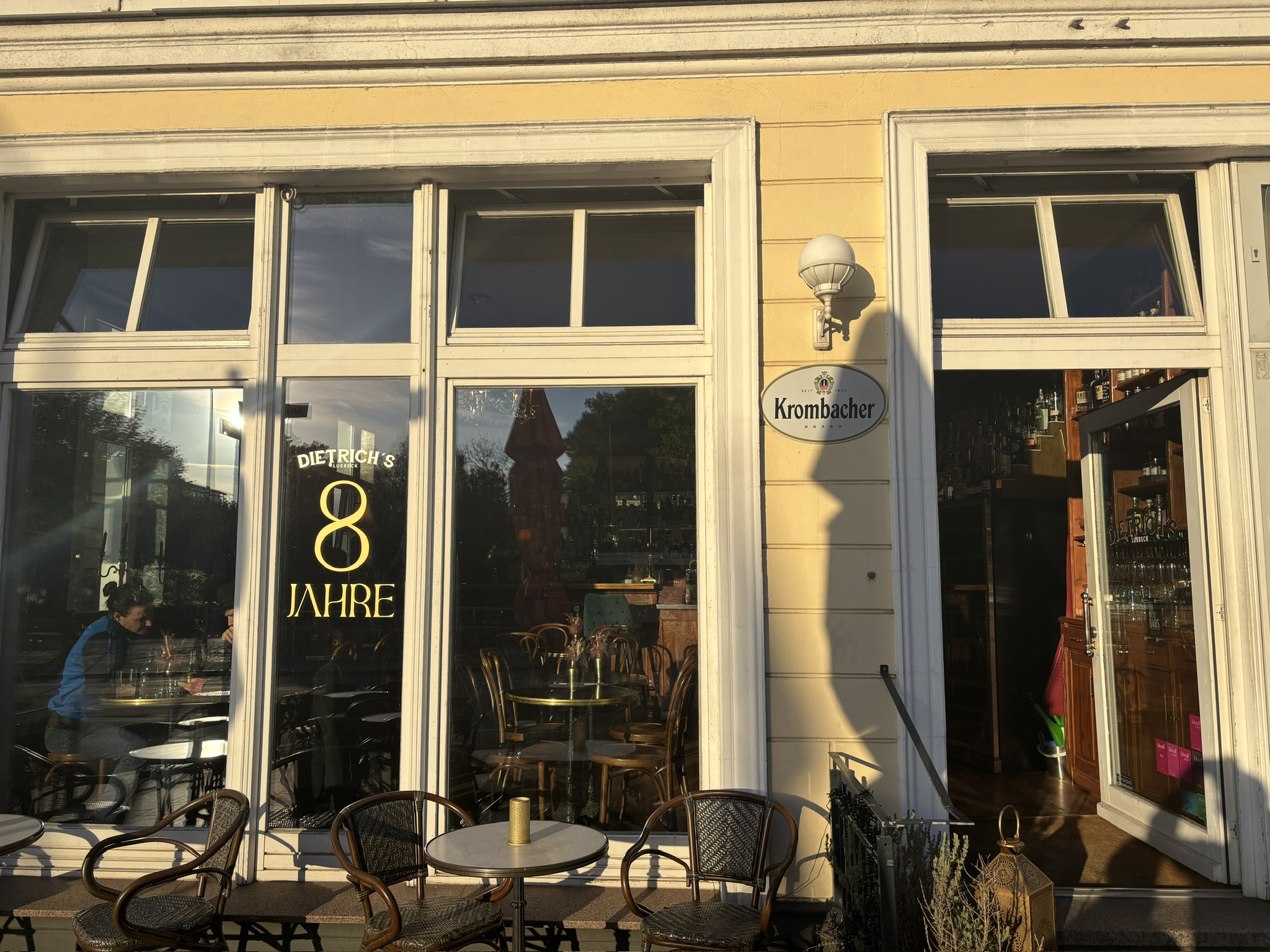 Für Bierfreunde fällt die Auswahl im Dietrich’s jedoch recht überschaubar aus: am Zapfhahn gibt es ausschließlich Krombacher Pils, ergänzt durch dieselbe Marke in Flaschen sowie eine alkoholfreie Variante. Ausgefallene Biere oder Spezialitäten sucht man hier vergeblich – und das bei Preisen, die im oberen Bereich liegen. Für ein Standard-Pils ist das schon ein stolzer Kurs, der sich durch Service oder Besonderheiten nicht wirklich rechtfertigen ließ.