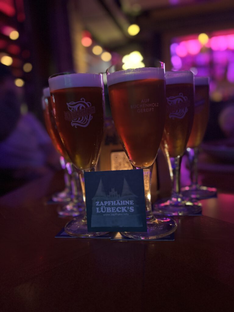 Die Zapfhähne Lübecks haben im August erneut die Gläser gehoben – diesmal im Jazzcafe, dem zweiten Stopp ihres geplanten Zweilokalitäten-Abends. Neben den vier Zapfhähnen waren auch zwei Praktikantinnen dabei, was sofort für eine lebhafte, gesellige Runde sorgte.